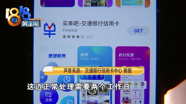 交通银行信用卡中心 客服:“我们会尽快与客服取得接洽,在解决客户问题的同时,把处理结果反馈给媒体,需要两个工作日。”