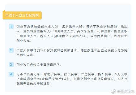 【非重庆籍人员在渝创业,可申请包管贷款了】今(27)日,重庆市人力社保局发布消息,重庆创业包管贷款已全面放开户籍限定,非重庆籍在渝创业人员也可以申请创业包管贷款了。个人创业最高贷款额度为20万元,有需要且符合条件的创业者可向创业所在地、户籍所在地街道(州里)公共就业创业服务机构或经办银行营业网点申请;企业申请借款最多可申请300万元,有需求的企业,可向企业注册所在地公共就业创业服务机构或经办银行营业网点申请。