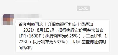 有网友爆料:各年夜购房群里连续呈现一则招商银止利率上调当丙息。